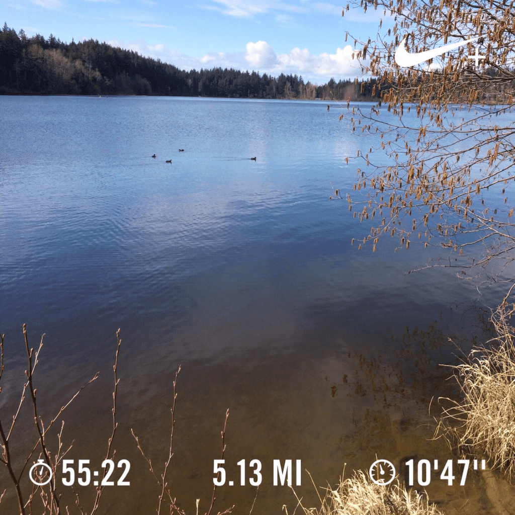 This weekend I ran later than I normally do. Mornings have been chilly, with frost on the lawn and car windows requiring scraping. In fact, this morning as I watched Louisville clobber Oregon State, I also watched snow fall, rain fall, and sun shine break through eventually. I was happily nestled in on my couch. Instead of my normal routine which generally has me out the door by 8:30 or 9 a.m., I’ve been enjoying coffee and a crossword, and, even better this weekend, March Madness before pulling on my spandex and heading to the lake. What’s funny is that even at the later time, I’m still seeing some of the same folks out there who apparently all have the same idea I do. So happy to see signs of spring out there.